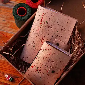 Yılbaşına özel yılbaşı renklerinden tasarladığımız defter modelimiz. Vejetal deriye fırça ile püskürterek deri üzerinde bu renk dokusu elde edilmiştir. Yani her ürünün derisi birbirinden tamamen farklıdır ve size özeldir.