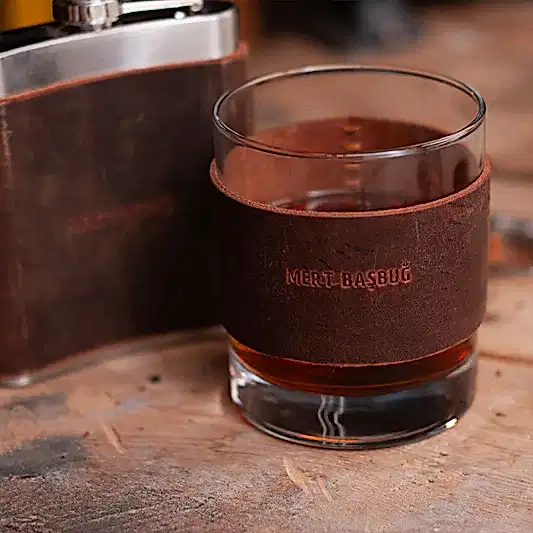 Deri Kaplı Matara + Viski Bardağı SET