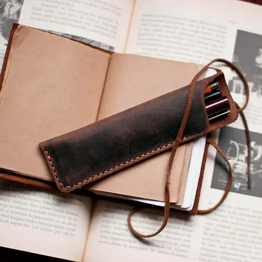 El yapımı deri kalemliklerimizin arasına daha önce de ürettiğimiz slim minimalist deri kalemliğimizi fazlaca talep olduğu için tekrar koleksiyonumuz arasına ekledik.